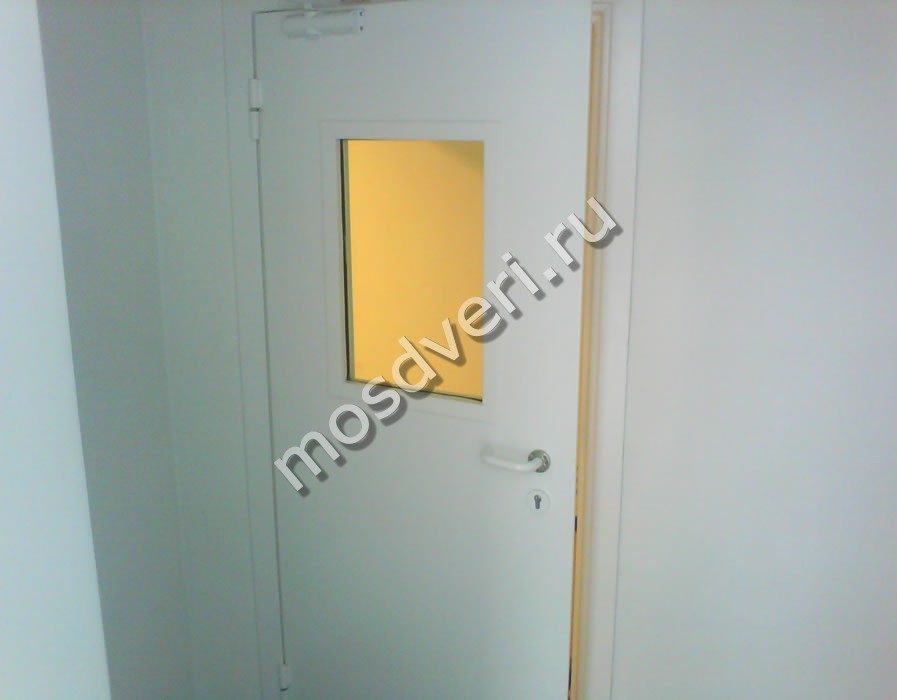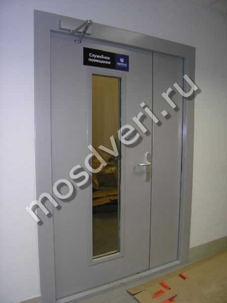 - Специальная конструкция. Чаще всего такие модели имеют полуторную или двустворчатую конструкцию – для облегчения эвакуации из помещения. Кроме того, рекомендуется оснащать их полотно вставкой из огнеупорного стекла, чтобы в случае опасности можно было наглядно оценить сложившуюся в помещении ситуацию.