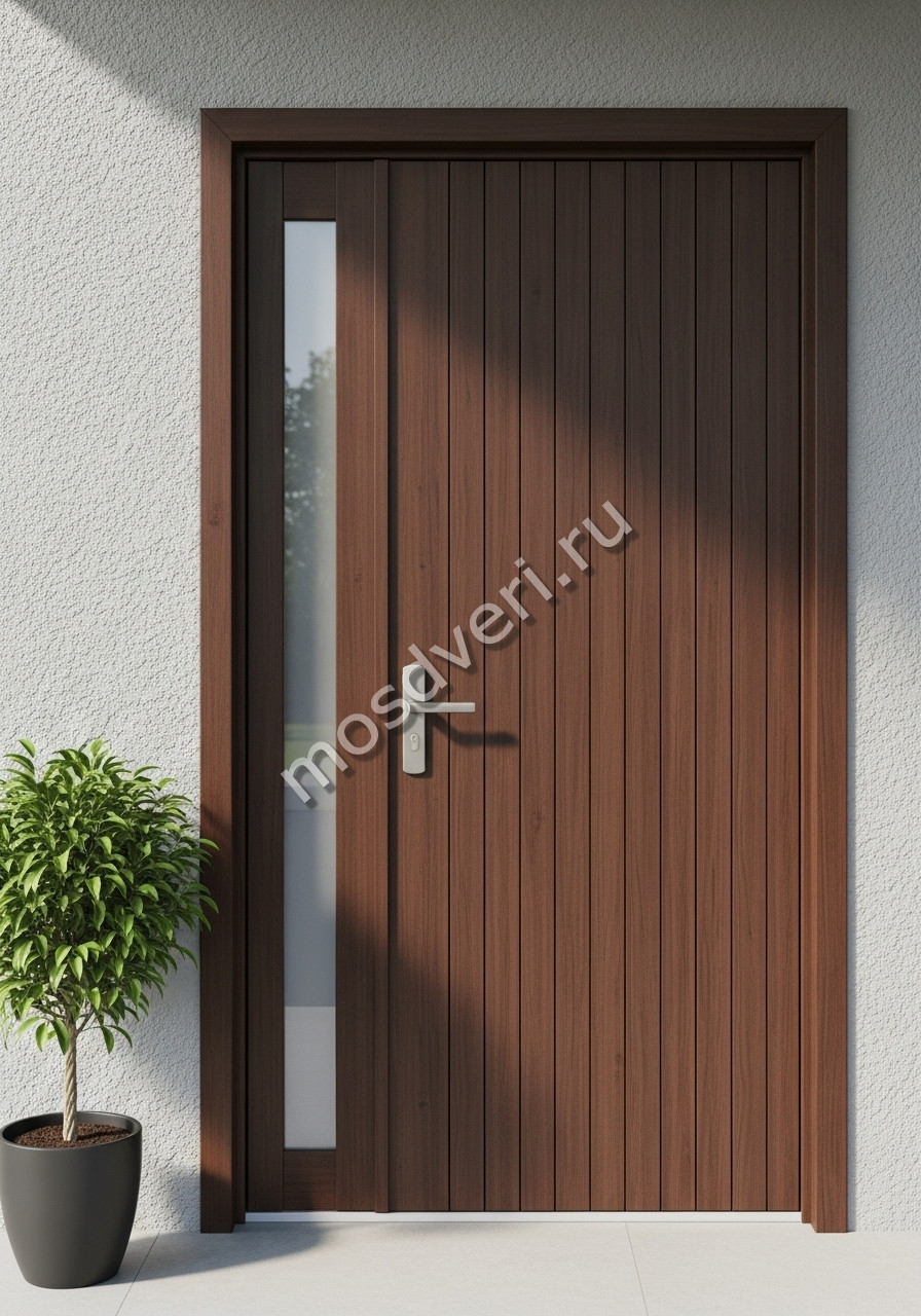 Дверь входная в дом со стеклом современная коричневого цвета — объединяет стильный внешний вид и превосходные защитные характеристики.